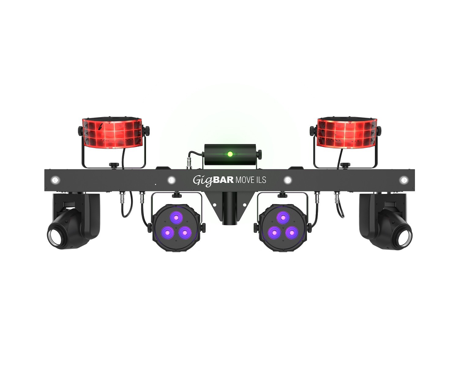 GigBAR Move ILS is a 5-in-1 pack and play system that controls ILS, our patent-pending lighting technology that expanded the possibilities of impressive light show synchronization quickly and easily. GigBAR Move ILS can control any product in the ILS ecosystem, wired or wirelessly. GigBAR Move ILS has moving heads, derbies, washes, a laser, and strobe effect pre-mounted onto a single bar. Easily control the unit via stand-alone, DMX, wireless RF remote or wireless footswitch so you can get to the good times sooner.